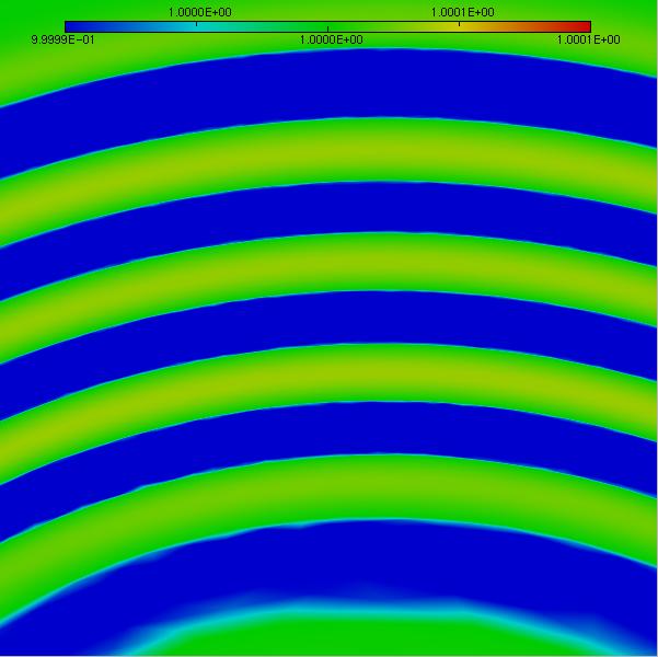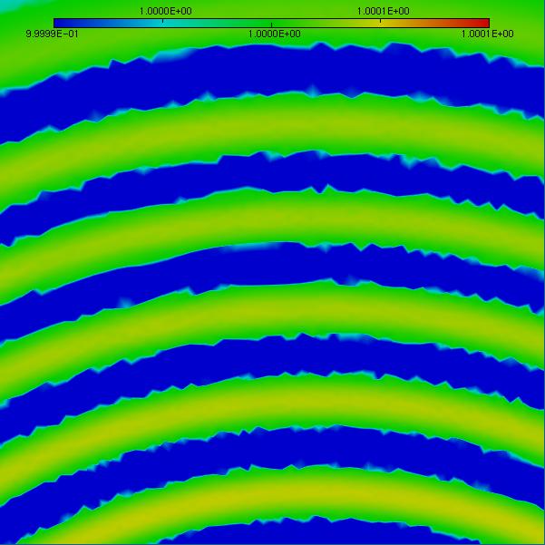 We consider here an acoustic source on the center, bottom of a rectangular domain. We are interested on the impact of the waves on a micro situated on the center, top of this domain. The functional of observation is the integral of the pressure deviation on the micro. As expected from a goal-oriented method, all the effort of remeshing concentrates on the waves that impacts on the target micro. For further details I suggest the following proceeding Here