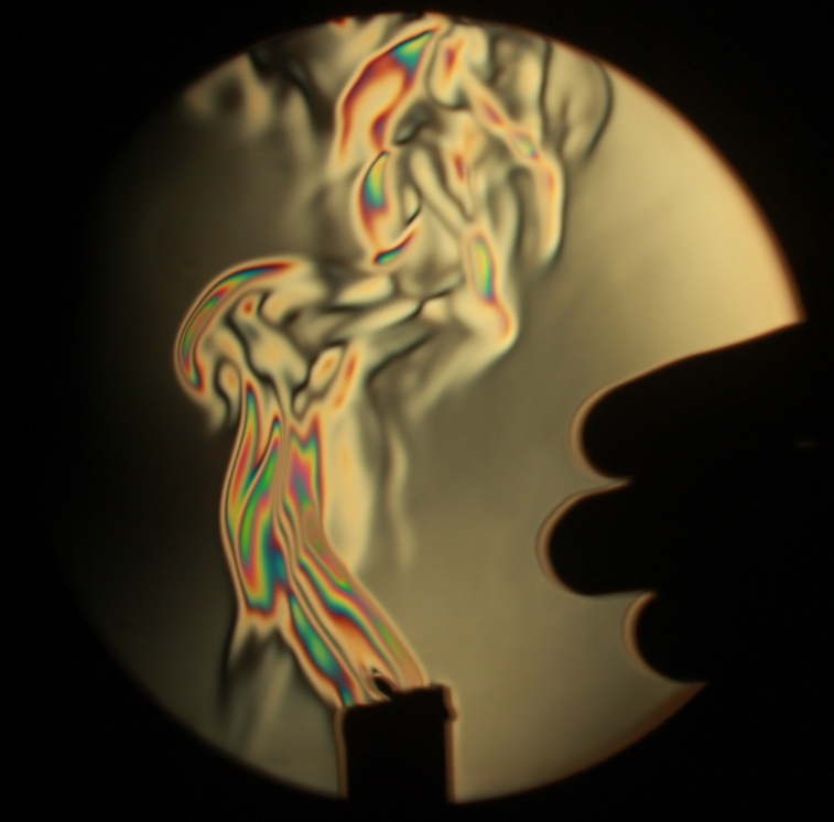 Several measurement methods can be used to visualize flows in transparent media and rely on the dependence of the refractive index on the local density. The most famous device, that can be explained by ray optics, is the Schlieren imaging system. With only a few modifications, it can be turned into an interferometer, that now relies on physical optics. Some of the typical results achieved thanks to the latter are shown in the video below: the flows associated with a candle, a human breathing, a hair dryer and a mass cooled with liquid nitrogen. There is of course room for improvement.